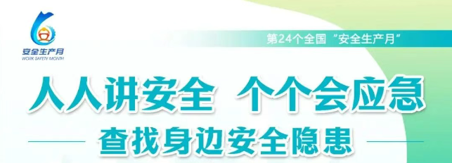 今年6月是全国第24个“安全生产月”,主题为“人人讲安全、个个会应急——查找身边安全隐患”。