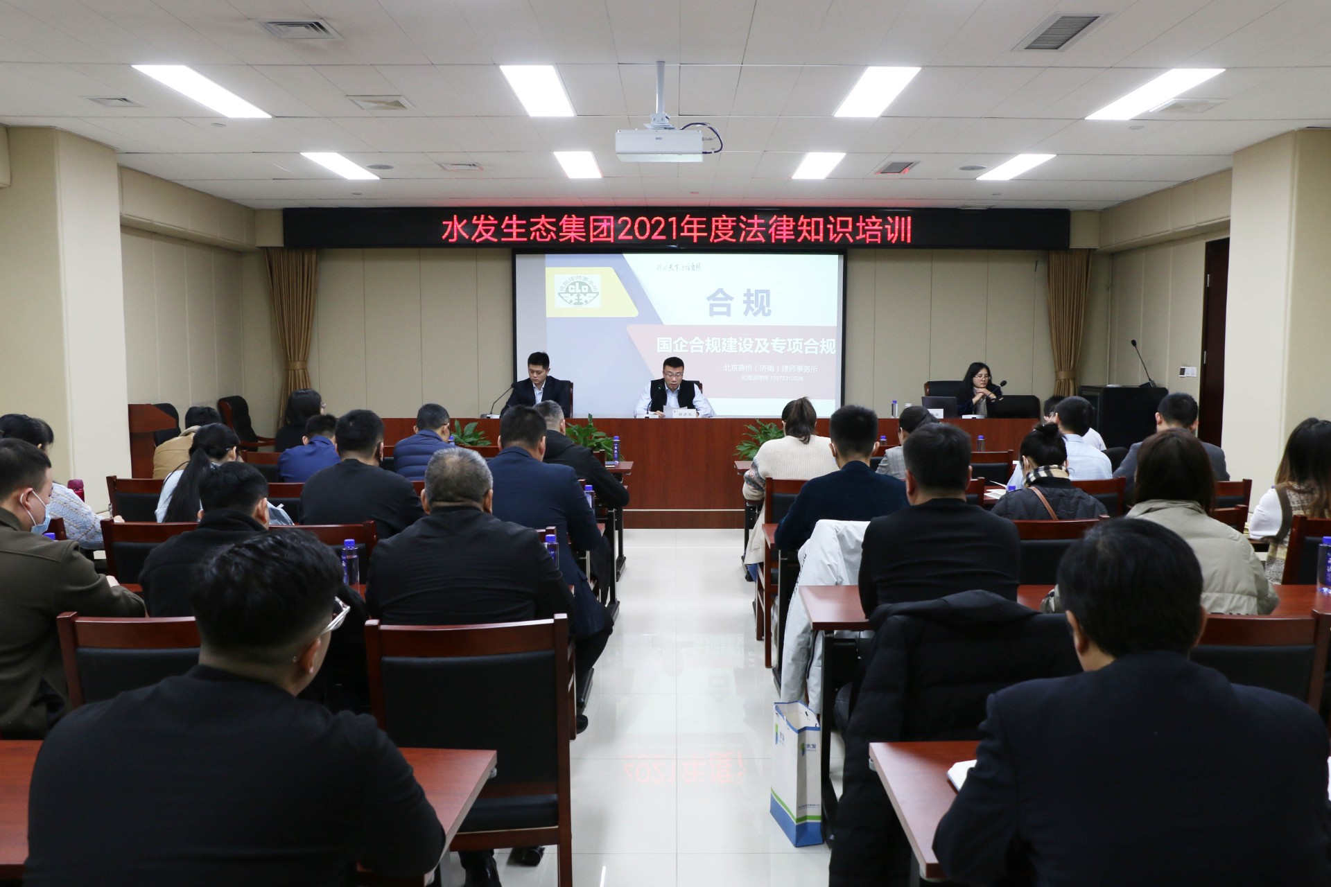 为进一步深入学习习近平法治思想,落实省国资委及水发集团关于法治宣传教育的相关要求,提高提升各公司和各部门的法治意识、合规意识、风险意识,12月8日,水发威廉希尓指数500集团开展了2021年度法律知识培训。各权属公司法务、合规工作者共30余人参加本次培训,集团副总经理刘济民出席培训并讲话。
