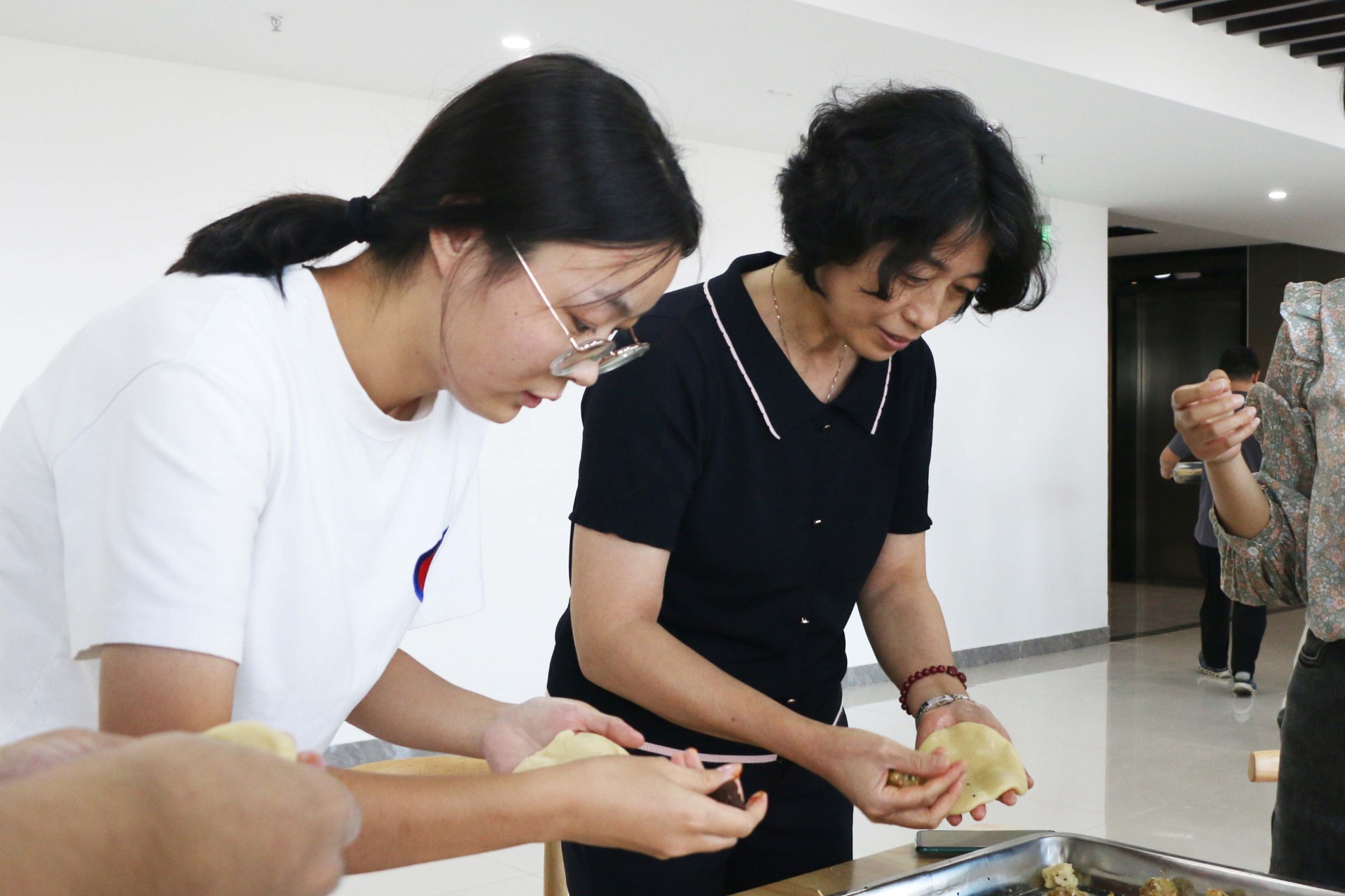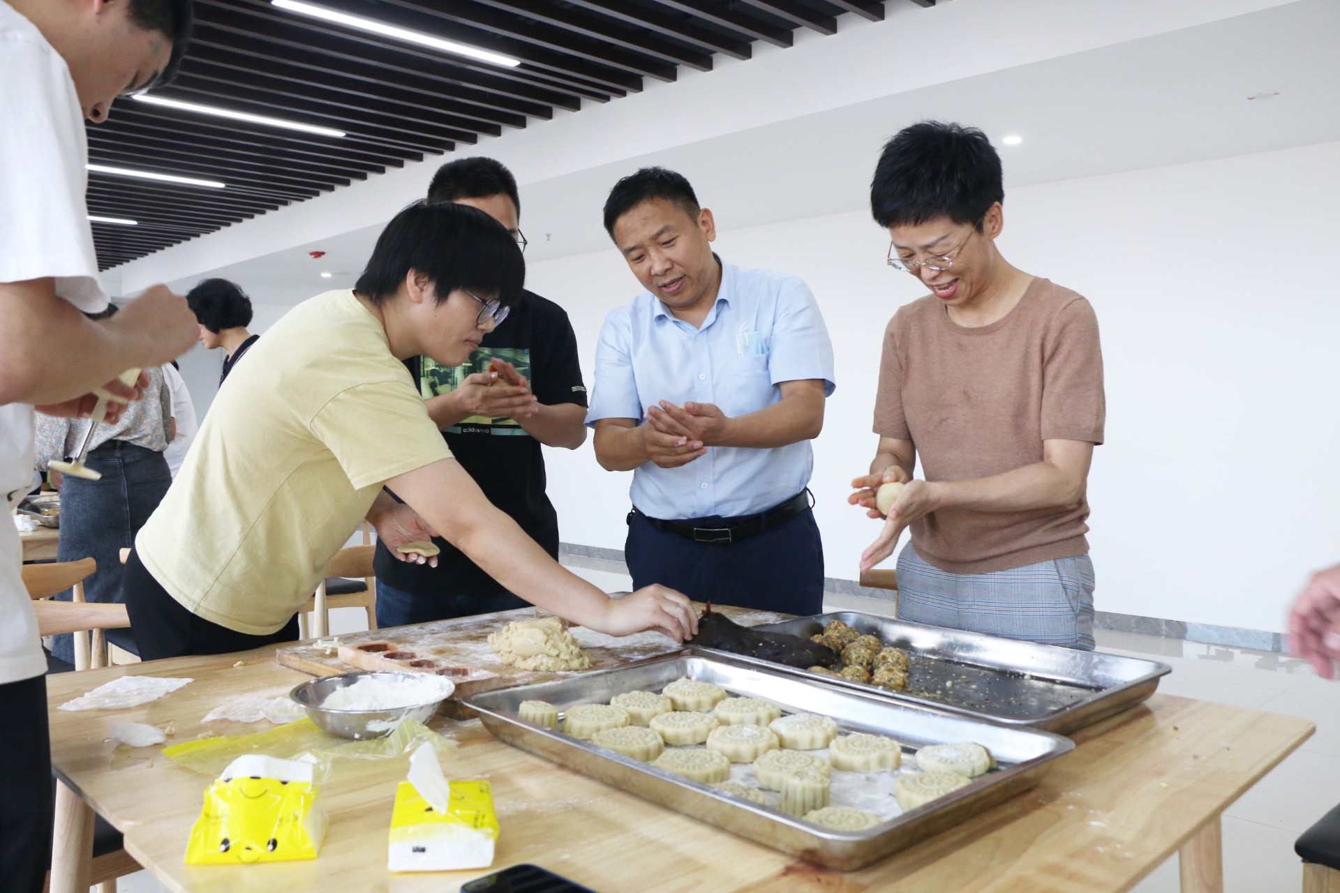 活动中员工亲手制作月饼,大家分工明确,揉面团、压皮、压模具依序进行,随后参加活动的各公司员工分别组成队伍展开月饼制作比赛,参赛选手纷纷拿出看家本领,舞动娴熟的巧手,亮出的自己的“绝活”,很快在大家的分工协作下,一个个图案多样、彰显中秋团圆之意的月饼在大家的巧手下完成,场面热闹,气氛融洽,最终经过评委评定,威廉希尓指数500集团本部队伍获得比赛第一名。月饼烘烤完成后,大家拿着自己亲手制作的月饼进行合影留念,会场内洋溢着欢乐祥和的节日气氛。