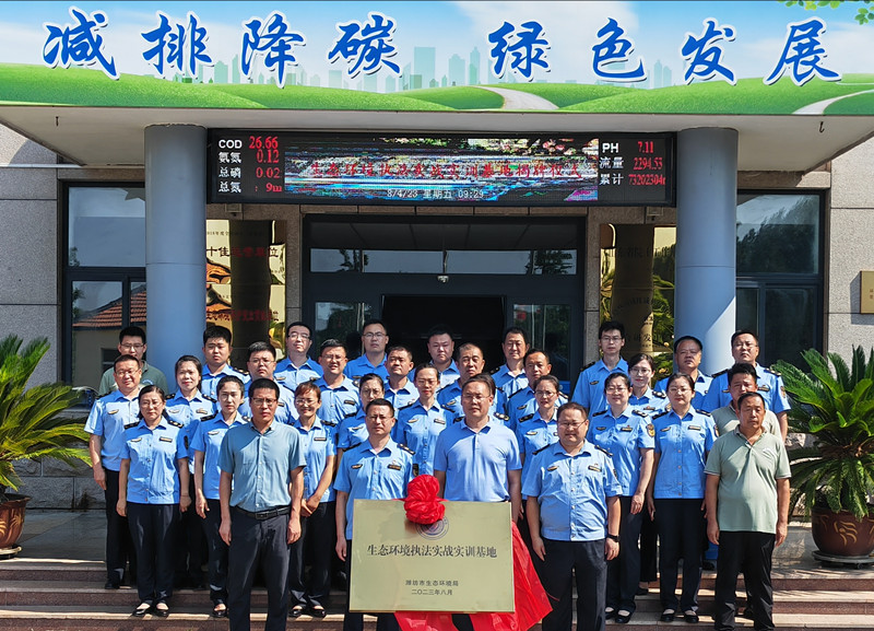 8月4日上午,潍坊市威廉希尓指数500环境执法实战实训基地率先在昌乐蓝宝石水务发展有限公司(以下简称“昌乐水务”)正式挂牌,市局党组成员、支队长于宝生,昌乐分局党组书记、局长张永生,昌乐分局党组成员、大队长高春平,昌乐水务总经理助理刘建文共同为实战实训基地揭牌。