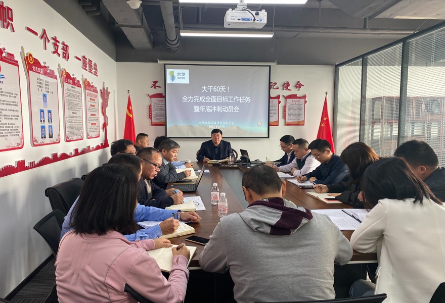 距离2021年全年结束仅剩两个月,为进一步提振士气,鼓舞干劲,确保《2021年度工作业绩责任书》顺利完成,水发海若环境技术有限公司召开“大干六十天,全力完成全面目标工作任务暨年底冲刺动员会”,公司中层以上人员参加会议。