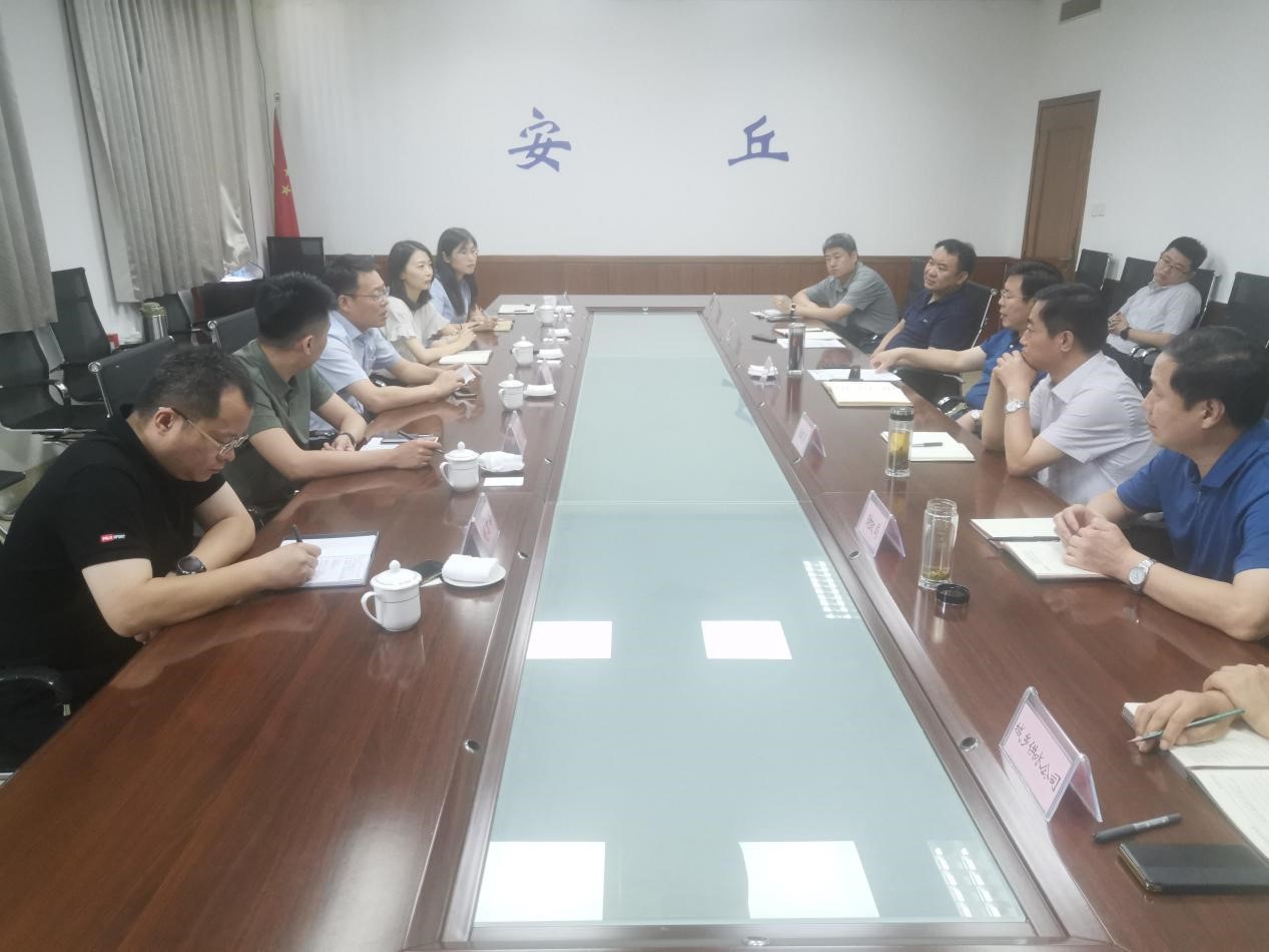 7月14日,集团党委书记、董事长公培山到安丘市人民政府就安丘市污水处理厂项目进行洽谈,安丘市委副书记、市长贾勤清参加座谈。