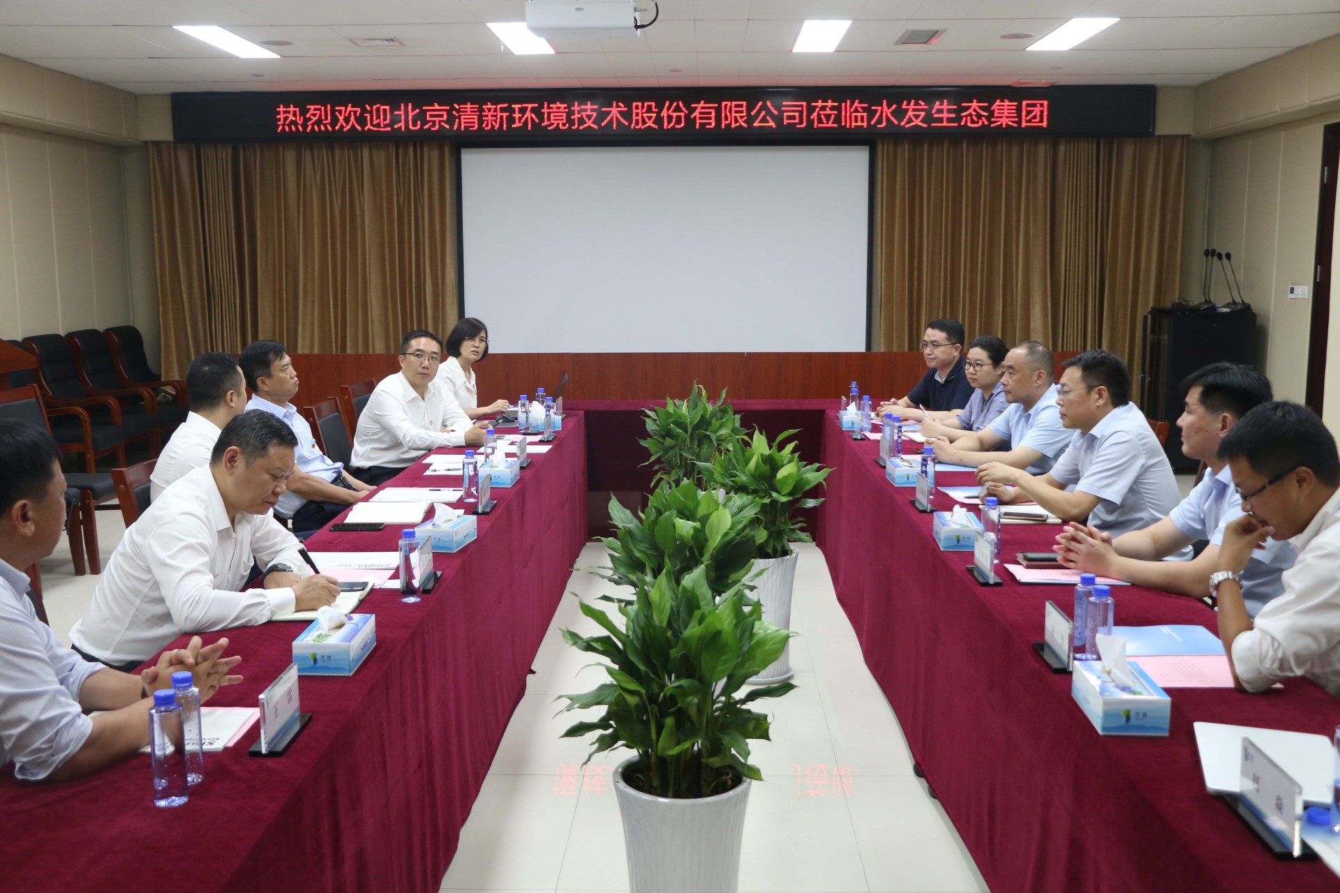 7月14日,北京清新环境技术股份有限公司董事长邹艾艾一行到水发威廉希尓指数500考察并座谈,水发威廉希尓指数500党委书记、董事长公培山主持座谈。