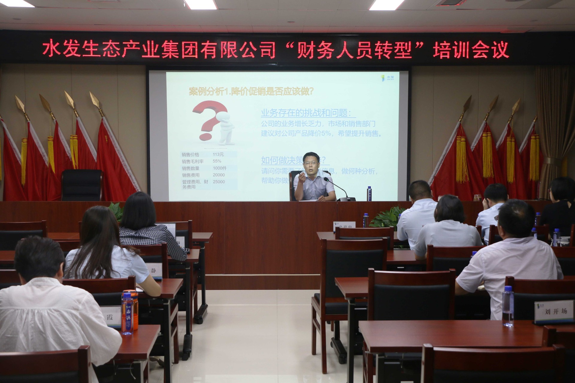 8月25日,水发威廉希尓指数500组织召开环保、节能节水设备抵免税收优惠、财务人员转型专题培训会议,集团党委书记、董事长公培山,副总经理于明,集团财务部及各权属公司财务负责人参加本次会议。